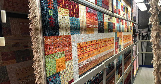 カラフルなギャッベ柄のラグ トルコ製ウィルトンカーペット フォリア