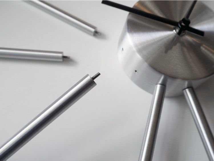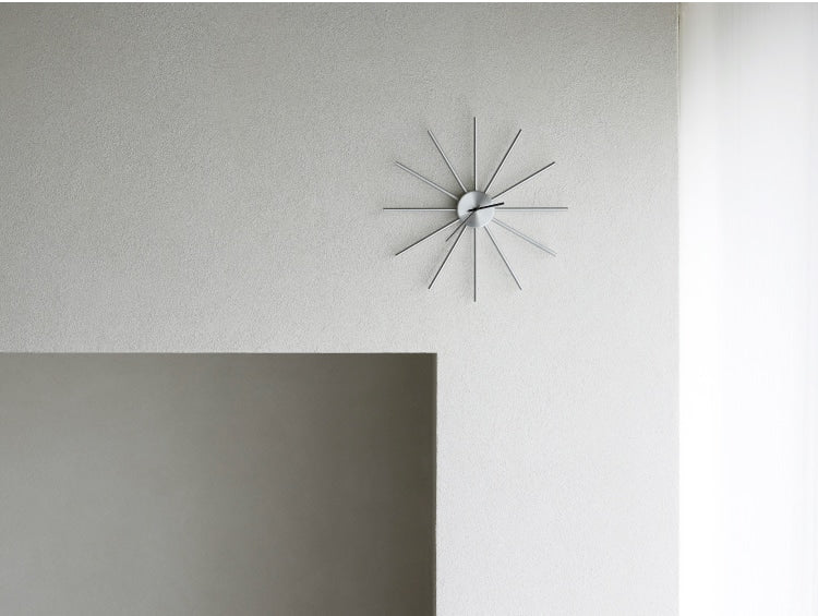 工業的な無骨さは、アルミ素材の無機質感とスマートなシルエットによって、繊細で洗練されたイメージへと昇華させました。光を受けてやさしくきらめき、主張しすぎることなく空間に溶け込みます。12本のポールが放射状に広がり、どの角度から見ても陰影が美しく、立体感を楽しめます。シンプルでありながら個性的で、アーバンな空間を作り上げるクールなデザインです。