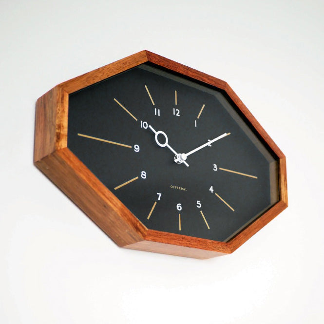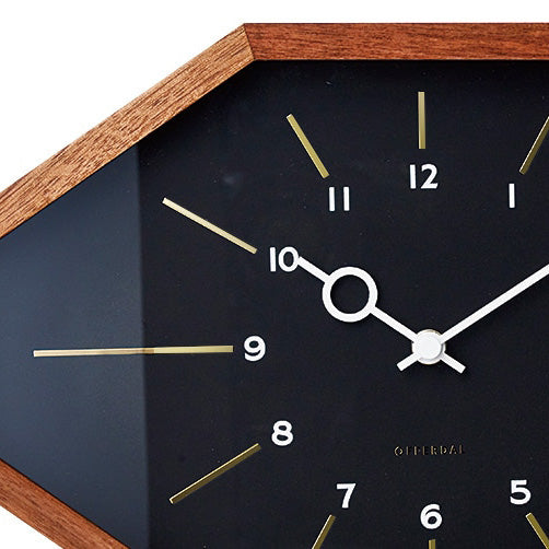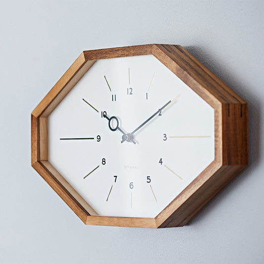 横長のシャープな8角形フォルムとミッドセンチュリーを思わせる文字盤のデザイン。個性のあるルックスは壁面のアクセントとなります。