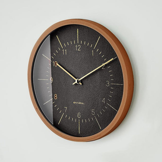 - フェイクレザーを文字盤全体にあしらったシックな電波時計。 ゴールドの針や数字が表情豊かな素材感を引き立てます。