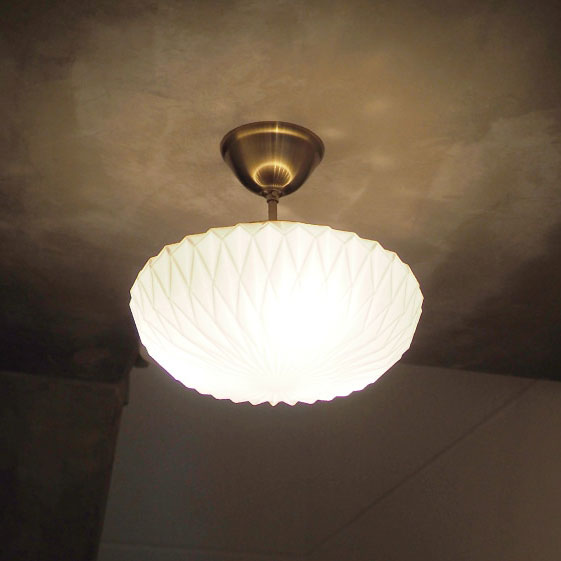 折り紙のような幾何学模様のホワイトガラスが柔らかで繊細な光を放つシーリングライト。 艶のあるガラスシェードから広がる光がお部屋を暖かく照らし、落ち着いた空間を演出します。